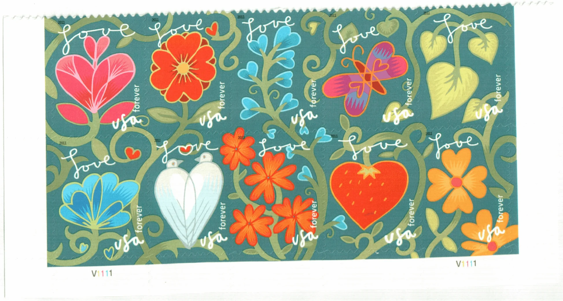 The Garden of Love Forever® Stamps (2011 issue) feature a whimsical, floral heart design that is perfect for your most meaningful mail. These are the premier Forever stamps for letters to loved ones, wedding RSVPs, and anniversary cards. The intricate pattern of birds and blossoms creates a warm, heartfelt impression before the envelope is even opened.