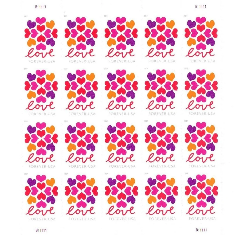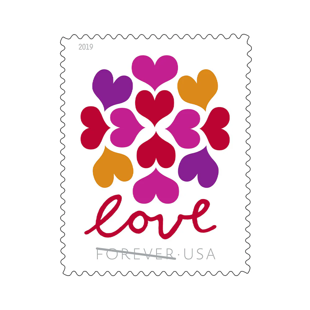 Hearts Blossom USPS Forever Stamps (2019) feature a soft and loving design, suitable for greetings, thank-you notes, and celebration mail.