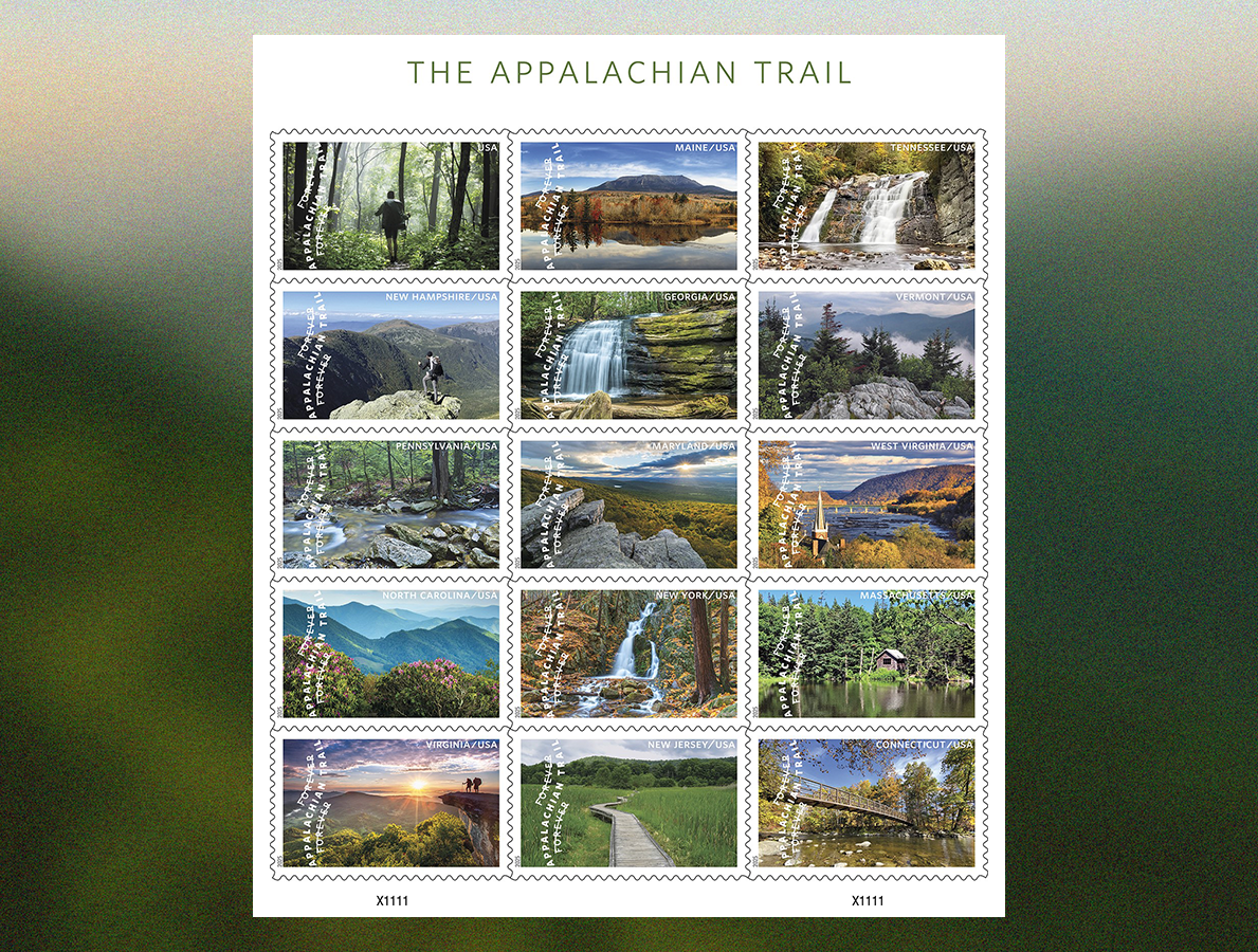 The Appalachian Trail 2025 USPS Forever Stamps highlight the famous trail, suitable for nature-themed mail, letters, and postcards.