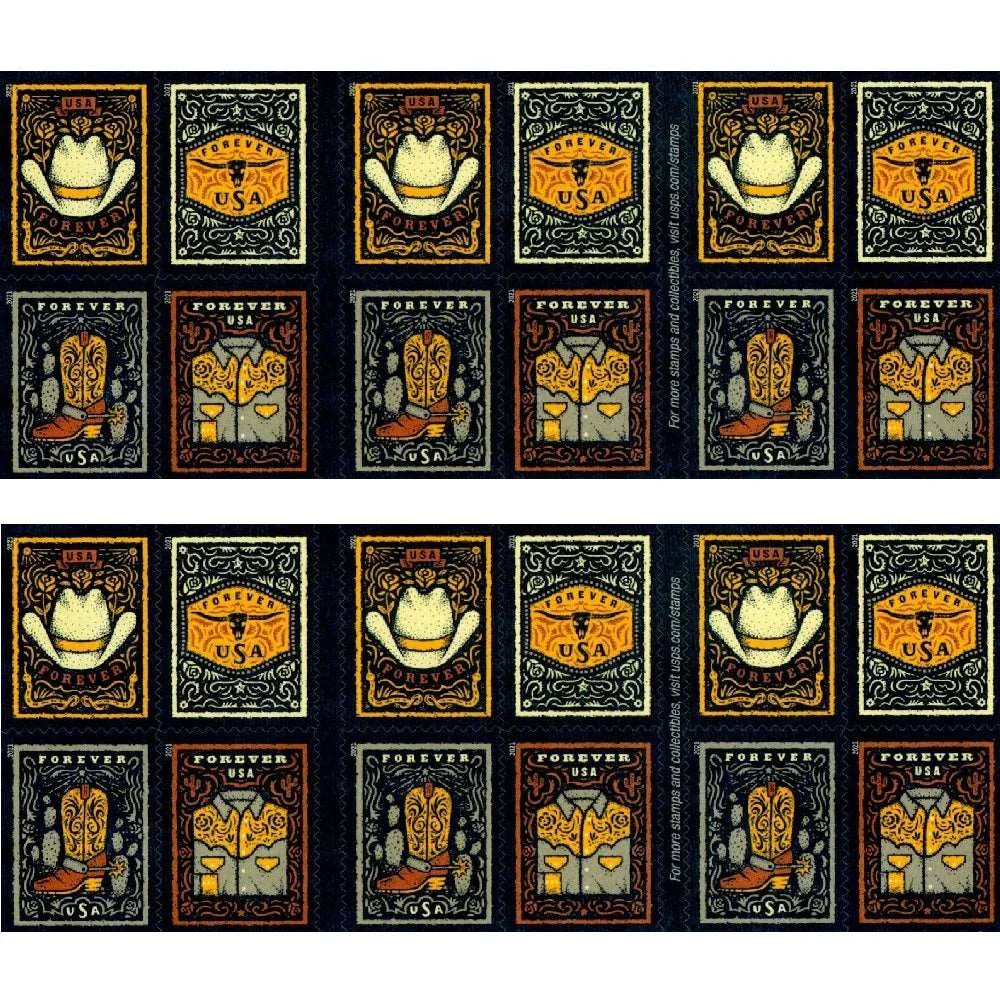 Western Wear Forever Stamps (2021 issue) celebrate the rugged spirit of the American West with four iconic designs. These are an excellent choice for boutique businesses, Western-themed events, or anyone looking to save money on postage for commercial mailings. The bold imagery provides a unique professional look for your outgoing invoices and personal stationery alike.